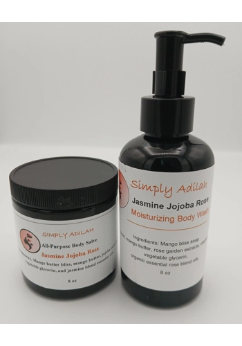 Whether you're treating yourself or looking for the perfect gift for a loved one, the Jasmine Jojoba Rose Body Wash & Body Salve set is a must-have. Embrace the beauty of nature and pamper your skin with this exquisite combination. Your body deserves it!